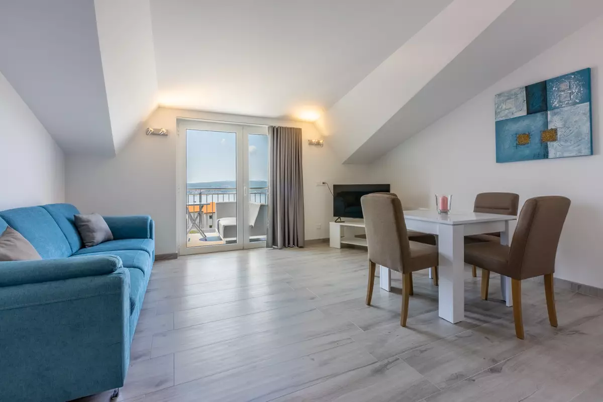 Vom Wohnbereich aus hat man einen direkten Zugang zu dem Balkon dieser Wohnung, welcher über einen traumhaften Meerblick verfügt.