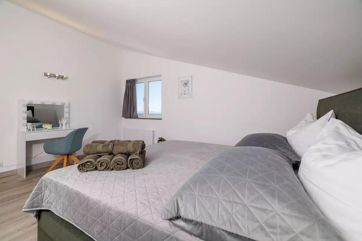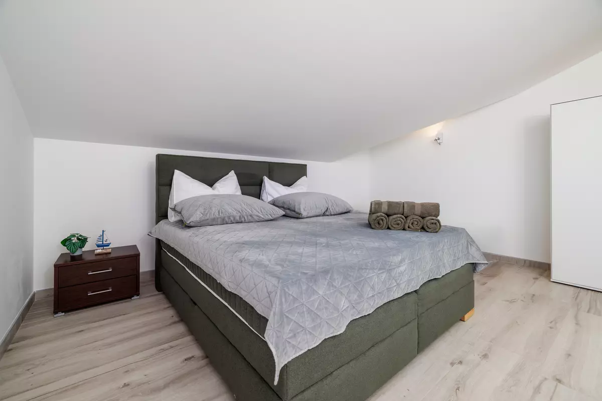 Die Wohnung liegt im 3. Obergeschoß, und besteht aus einem geräumigen Wohn-/Esszimmer mit Küche im selben Raum, einem Schlafzimmer und einem Badezimmer. In dieser Wohnung sind 2 Klimaanlagen vorhanden, eine im Wohnbereich und die zweite im Schlafzimmer. Vom Wohnbereich aus hat man einen direkten Zugang zu dem Balkon dieser Wohnung, welcher über einen traumhaften Meerblick verfügt. Ein privater Parkplatz befindet sich auf dem Grundstück des Hauses und steht kos...